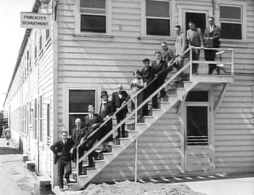 Most studios had their own press departments — such as the MGM publicity unit illustrated in the photo above. Publicity staffs were trained to crank out bald-faced lies and distortions on a daily basis to build up their stars and promote new releases. They were primed to do exactly the same to counteract harmful stories and head off scandals.